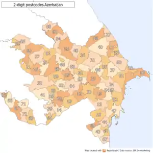 2-digit postcode areas Azerbaijan (defined through the first two postcode digits)