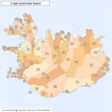 2-digit postal code areas in Iceland (defined through the first two postal code digits)