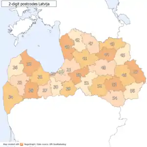 2-digit postcode areas Latvia (defined through the first two postcode digits).