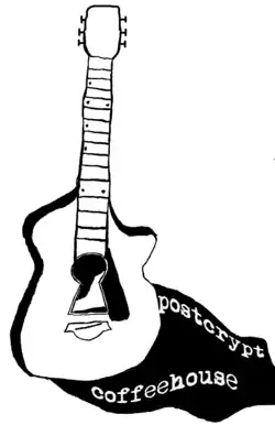 ![]() The official logo of Postcrypt Coffeehouse, designed by Ginia Sweeney. | |
