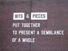 There are several characteristics which lend art to being postmodern; these include bricolage, the use of text prominently as the central artistic element, collage, simplification, appropriation, performance art, the recycling of past styles and themes in a modern-day context, as well as the break-up of the barrier between fine and high arts and low art and popular culture.[1][2]