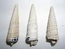 | Three fossil shells of Potamides migralis | |