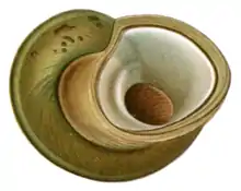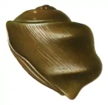 The relationship between Potamolithus rushii and Potamolithus iheringi is exceedingly interesting.[2] The two species are similar in general color-scheme, in the varix, absence of more rapid descent of the suture towards the mouth, etc., but are totally diverse in contour, the one being carinate, the other smooth and naticoid.[2] Yet it is significant that while Potamolithus iheringi has no trace of a peripheral keel, the green band occupies the same position as that coloring the keel in Potamolithus rushii.[2]