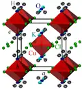 2O.[1][4][5][6][7] Each copper atom is immediately surrounded by two oxygen atoms and four chlorine atoms forming a hydrated tetrachloridocuprate(II) anion. Two of the chlorine atoms are about 0.75 angstroms further away than the other two. Each potassium atom is surrounded by four oxygen atoms, four copper atoms and eight chlorine atoms.[4]