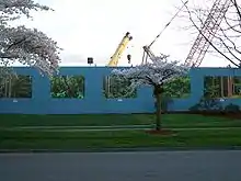 - In 2010, 22 vacant houses in a blighted part of Cleveland, Ohio, US, were disguised with fake doors and windows painted on the plywood panels used to close them up, so the houses looked occupied.[26] Chicago[27] and Cincinnati[28] have initiated similar programs.