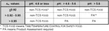 - A FOOD that because of its pH or AW value, or interaction of AW and pH values, is designated as a non-TCS FOOD in Table A or B of this definition;