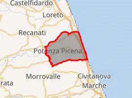 Potenza Picena is a comune (municipality) in the Province of Macerata in the Italian region of Marche, about 30 kilometres (19 mi) southeast of Ancona and about 15 kilometres (9 mi) northeast of Macerata.