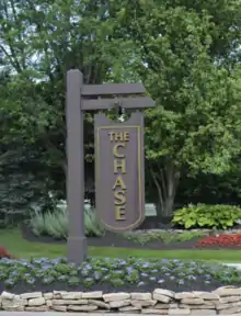 There are many residential subdivisions in Powell.[39] In 1974, the first home was built in The Retreat, marking the development of Powell's first subdivision. The Retreat was designed to include all custom-built homes on wooded lots of at least one acre; arguably the largest lots in Powell.[40] It wasn't until the 1980s that growth from the Columbus Metropolitan Area reached Powell, spurring the development of additional subdivisions. In addition to The Retreat, most of the original subdivisions developed in the late 1980s are found just east of the Olentangy River, off Powell Road. These include The Chase, Cardinal Hill, Deer Run, Bartholomew Run, Falcon Ridge, and Olentangy Ridge. Throughout the 1990s, development continued on Ashmoore, The Lakes of Powell, Powell Place, Grandshire, Liberty Ridge, Liberty Hills, and the Woods of Sawmill.[41] Beginning in 1998, development shifted to Chamber's Glen, Golf Village, and Middlebury Estates.