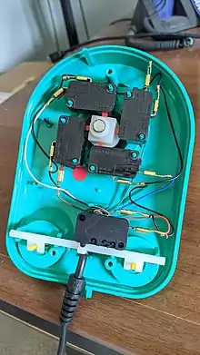 - Pastel green body, with pastel yellow fire buttons, pastel pink joystick shaft and pastel blue torque controller