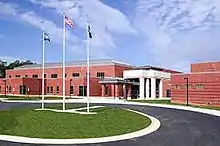 Powhatan High School was held in a number of different buildings in the 1900s; the building used from 1971 to 2003 was later used as Pocahontas Middle School from 2003 to 2016, now called Pocahontas Landmark Center and used as the school board office.[1][2] The school was racially integrated in 1969.[3] The current facility opened in 2003.[3]