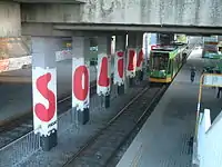 Poznański Fast Tram (Polish: Poznański Szybki Tramwaj, PST, informally: PeSTka, pestka – drupe, stone fruit) is a 8.1-kilometre (5.0 mi) stretch of grade-separated tram/light rail line in Poznań, Poland. The tracks are set in a cutting or on an overpass, switches allowing to drive on adjacent tracks. The stops, resembling railroad stations, have a different colour scheme each. This tram line was created as an alternative to a more expensive metro. The PST, opened in 1997, links the densely populated northern districts of Winogrady and Piątkowo with the city centre. It is served by lines 12, 14, 15 and 16, as well as by the night line N201.
