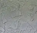 Thrust kick to the quadriceps. Located at Banteay Chhma temple(12th/13th century)