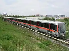 Metro M1 trains have operated on line C since 2000; they completely replaced older cars on this line in 2003. The metro sets were developed specially for Prague. Prague Transport Company (DPP) owns 53 units of this type. These units were manufactured in Prague by a consortium consisting of ČKD Praha, ADtranz and Siemens (during the contract Siemens acquired ČKD Praha) mainly between 2000 and 2003. The length of the unit is 96.66 metres, acceleration is 1.3 m/s, and the capacity of the set is 1,464 people (224 sitting, 1,240 standing).[12] This unit was also adapted for use in Venezuela on the Maracaibo Metro.