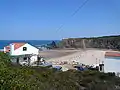 The main beach of Praia de Odeceixe is situated at the mouth of the Rio de Seixe (River Seixe), right on the border between the Algarve and the Alentejo. This sandy beach is on the southern side of the outflow to the sea. The northern side of the river has a backdrop of steep cliffs which shelter the beach.[4] To the south of the main beach is a small cove with a sandy satellite beach called Praia de Adegas which has been designated a naturist beach.[5] Also to the south of the main beach is the small village of Praia de Odeceixe, from where a steep path descends to the beach.