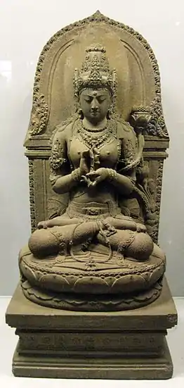 Prajñāpāramitā (Sanskrit: 𑀧𑁆𑀭𑀚𑁆𑀜𑀸𑀧𑀸𑀭𑀫𑀺𑀢𑀸) means "the Perfection of (Transcendent) Wisdom" in Mahāyāna Buddhism. Prajñāpāramitā refers to a perfected way of seeing the nature of reality, as well as to a particular body of Mahayana scriptures (sūtras) which discusses this wisdom. It also refers to the female deity Prajñāpāramitā, a personification of wisdom also known as the "Great Mother" (Tib: Yum Chenmo).[1]