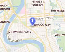 The Precious Blood Roman Catholic Church (French: Église du Précieux Sang) is a Roman Catholic parish located in the St. Boniface neighbourhood of Winnipeg, Canada. The church was designed by Canadian architect Étienne Gaboury. Construction of the building was completed in 1968.[1] The church's tipi-inspired shape[2] has been called Gaboury's most recognizable work by the Winnipeg Architecture Foundation.[1]