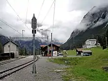 Preda railway station is a railway station in the municipality of Bergün Filisur, in the Swiss canton of Graubünden. It is located on the 1,000 mm (3 ft 3+3⁄8 in) metre gauge Albula line of the Rhaetian Railway.[1] Hourly services operate on this section of the line.