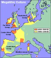 The Beaker culture was present in Iberia during the Chalcolithic.[20] Gordon Childe interpreted the presence of its characteristic artefact as the intrusion of "missionaries" expanding from Iberia along the Atlantic coast, spreading knowledge of Mediterranean copper metallurgy. Stephen Shennan interpreted their artefacts as belonging to a mobile cultural elite imposing itself over the indigenous substrate populations. Similarly, Sangmeister (1972) interpreted the "Beaker folk" (Glockenbecherleute) as small groups of highly mobile traders and artisans. Christian Strahm (1995) used the term "Bell Beaker phenomenon" (Glockenbecher-Phänomen) as a compromise in order to avoid the term "culture".