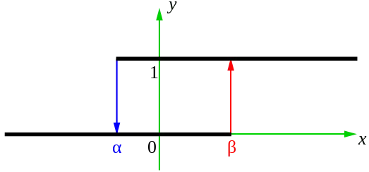 Graphically, if is less than , the output is "low" or "off." As we increase , the output remains low until reaches —at which point the output switches "on." Further increasing has no change. Decreasing , does not go low until reaches again. It is apparent that the relay operator takes the path of a loop, and its next state depends on its past state.
