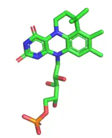 Prenylated flavin mononucleotide (prFMN) is a cofactor produced by the flavin prenyltransferase UbiX and used by UbiD enzymes in their function as reversible decarboxylases. Hence, prFMN is pivotal for catalysis in the ubiquitous microbial UbiDX system.[1]
