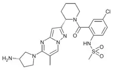 - Yamaguchi-Sasaki T, Tamura Y, Ogata Y, Kawaguchi T, Kurosaka J, Sugaya Y, et al. (2020). "Design and Synthesis of 2-(1-Alkylaminoalkyl)pyrazolo[1,5-a]pyrimidines as New Respiratory Syncytial Virus Fusion Protein Inhibitors". Chemical & Pharmaceutical Bulletin. 68 (4): 345–362. doi:10.1248/cpb.c19-00895. PMID 32238652.