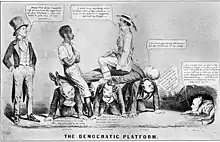 Buchanan and his allies in Congress worked systematically to undermine Douglas. By 1860 they had weakened his influence in the Party; they had stripped away his patronage, and removed him from the powerful chairmanship of the Committee on Territories. He was much weaker inside the Senate than before.[17] Nevertheless, Douglas had a powerful base outside Washington in the northern wing of the Democratic Party that was increasingly hostile to the president and his southern supporters. The battle with Lincoln in 1858 drew national attention, with Democrats reading Douglas's debates and hailing him as the victor, thereby allowing Douglas to emerge as the favorite to win the party nomination for president in 1860.[18][19]