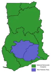 The non-partisan Coalition of Domestic Election Observers (CODEO), the Economic Community of West African States (ECOWAS) and the African Union (AU) all declared that the elections were, for the most part, free and fair.[5] Despite this, there were still widespread allegations of voting irregularities, though these were dismissed as unsubstantiated by the electoral commission chairman. As a result of these claims, the New Patriotic Party immediately rejected the results upon their release[5] and its candidate, Nana Akufo-Addo, remarked that his party's leaders would be meeting on 11 December to consider their options, one of which is to contest the results by lodging an appeal in court.[6] Violent opposition was however ruled out.[5]