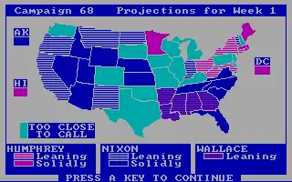 The game could be played with either two or three candidates (for example, the "Historical" scenarios for 1968 and 1980 included third party candidates George C. Wallace and John Anderson, respectively, and "Ahistorical" scenarios for any year could include the addition of a third party candidate), and the computer could control any or all of the candidates (thus allowing for the possibility of a non-player, straight simulation of an electoral scenario), meaning the game could be played by one, two, or three players.