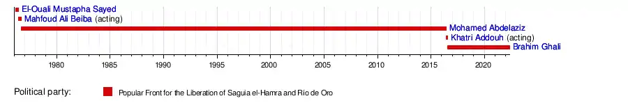 | 1 | El-Ouali Mustapha Sayed (1948–1976) [lower-alpha 1] | 29 February 1976 | 9 June 1976 † | 101 days | POLISARIO | — | |