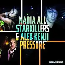 "Pressure" is a song by Nadia Ali, Starkillers and Alex Kenji. It was released on February 15, 2011 by Spinnin' Records. The song reached No. 16 on the Ultratip Chart in Wallonia, Belgium.