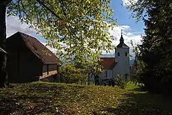 The local church, from which the settlement gets its name, is dedicated to Saints Primus and Felician and belongs to the Parish of Ljubno ob Savinji. It has a rectangular nave with a western belfry. It was built in 1481 and extensively renovated in the late 18th century and again in 1874.[6]