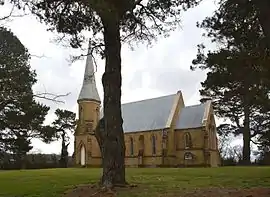St Thomas' Anglican church lies in the locality of Primrose Valley and the civil parish of Yanununbeyan, despite the sign indicating that it is in Carwoola. The church was completed in 1874.
