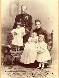 On 15 November 1889 the prince was in the East, on board Almirante Barroso (who was on his first circumnavigation trip), when a coup d'état ended the monarchist regime in Brazil.[8] Communication difficulties prevented the crew from learning about what happened before December.[8] Telegrams of Admiral Wandenkolk - now Minister of the Navy of the provisional government - instructed the commander of the cruiser to replace the imperial insignia of the flags and to induce Augusto to resign.[8] After consulting his grandfather and his uncle, the Count d'Eu, the prince decides not to resign, but to request a license of two months.[8] In telegram, the minister responds to the request: "Prince resignation service, I grant leave. Wandenkolk."
