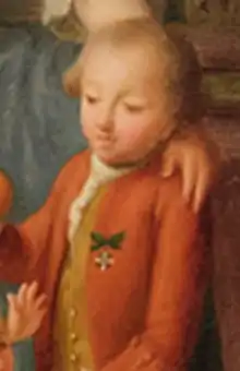 - Genealogie ascendante jusqu'au quatrieme degre inclusivement de tous les Rois et Princes de maisons souveraines de l'Europe actuellement vivans [Genealogy up to the fourth degree inclusive of all the Kings and Princes of sovereign houses of Europe currently living] (in French). Bourdeaux: Frederic Guillaume Birnstiel. 1768. p. 27.