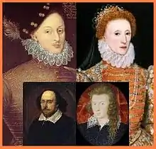 The Prince Tudor theory was further expanded by Elisabeth Sears' Shakespeare and the Tudor Rose (2002),[16] Hank Whittemore's The Monument (2005),[17] and Helen Heightsman Gordon's The Secret Love Story in Shakespeare's Sonnets (2008). Sears explores how Elizabeth might have concealed one or more pregnancies, but decided to remain unmarried for political reasons. Whittemore believes the sonnets emphasize the royal blood of Henry Wriothesley, who was convicted of treason for participation in the Essex Rebellion of 1601, but who otherwise might have been named as successor to his mother, Queen Elizabeth I.[18] Gordon emphasizes the love story between Elizabeth Tudor and Edward De Vere, citing an alleged historical reference to their love affair in 1572–73.[19] Gordon believes that the mysterious dedication to the sonnets published in 1609 has encrypted the names of the love child and his parents, their three mottos, and a clue as to the probable date of conception, "Twelfth Night" of 1573.[20]