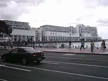 After World War II, the wharf, and Auckland itself, gained in importance both as starting point and destination for an increasing number of ocean liners (especially in the early post-war years when long-distance air travel was not as established yet), and later on, cruise ships including the Rangitane and Ruahine. In 1960, passenger services were moved from the neighbouring Queens Wharf to Princes Wharf,[3] and in 1961 a dedicated passenger terminal was built on the wharf.[4]