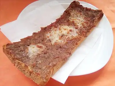 Princesses (in Bulgarian: Принцеси) are popular Bulgarian open face baked sandwiches (which are also considered a à la minute dishes) prepared with minced meat, often eaten for breakfast and sold as fast-food. Both the plural - princesses and the singular - princess are used, to describe many sandwiches and a single sandwich respectively. Often, when prepared at home, there is going to be a plate full of regular (bread slice sized) princesses baked in an oven or an electric grill, but the fast food version is longer - made from a whole bread that has been sliced through its longitude resulting in a loaf-sized sandwich that may or may not be baked on a charcoal barbecue grill. There may or may not be kashkaval (yellow cheese) on top of the sandwich and people often garnish a princess with mayo, ketchup, mustard or ljutenica, depending on their taste.[1]