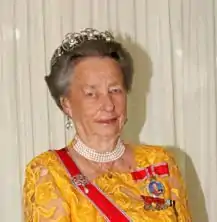 She was a great-great granddaughter of Queen Victoria of the United Kingdom and great granddaughter of Edward VII of Great Britain, thus a second cousin to Queen Elizabeth II.[25] At the time of her birth she was 17th in the line of succession to the British throne, and 77th at the time of her death. Princess Ragnhild's maternal aunt was Queen Astrid of Belgium, which also made Princess Ragnhild a first cousin of kings Baudouin and Albert II of Belgium and of Joséphine-Charlotte of Belgium, Grand Duchess of Luxembourg.[26] Through her maternal grandmother, Princess Ingeborg of Denmark, she was also a second cousin of Queen Margrethe II of Denmark and Queen Anne Marie of Greece as well as a second cousin once removed of King Carl XVI Gustaf of Sweden through her maternal grandfather Prince Carl of Sweden.