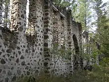 Four years, a million dollars, hundreds of thousands of hours of work by engineers, carpenters, and masons (several of whom died in accidents) went into constructing a cement plant. The project came to an abrupt halt in 1914, for reasons not entirely clear: possibly lack of limestone or (due to World War I) coal.[21]