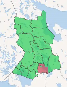 As a municipal division, the district is incorporated as Prionezhsky Municipal District.[7] Its fifty-one rural localities are incorporated into thirteen rural settlements within the municipal district.[8] The city of republic significance of Petrozavodsk is incorporated separately from the district as Petrozavodsky Urban Okrug,[13] but serves as the administrative center of the municipal district as well.[7]
