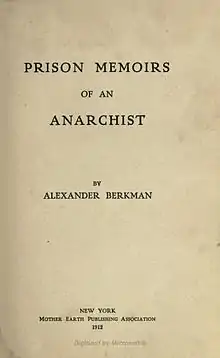 Prison Memoirs of an Anarchist is Alexander Berkman's account of his experience in prison in Western Penitentiary of Pennsylvania, in Pittsburgh, from 1892 to 1906. First published in 1912[1] by Emma Goldman's Mother Earth press, it has become a classic in autobiographical literature.