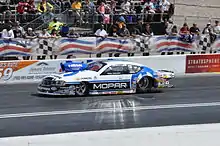 - In NHRA competition, the cars must be produced within the last five model years (2011–2015). In the late 1980s and into the 1990s, car sizes increased as mid-size family sedans had become the car of choice, but cars shrank by the 2000s (decade) as compact cars, banking off the popularity then of the sport compact class, became the trend, as General Motors and Daimler (then owning the Dodge brand) began using compact cars (similar to pro RWD except for the engine). However, that the push back to pony cars and mid-size family sedans became the choice again, as Ford uses a "pony car" and Dodge and Chevrolet began using mid-size family sedans. The 2013 legal cars are the Chevrolet Camaro, Dodge Avenger, and Ford Mustang. For 2014, Fiat teams are transitioning to the Dodge Dart.[11]