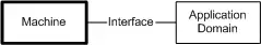 The problem context contains the machine and the application domain. The machine interface is where the Machine and the application domain meet and interact.