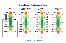 The Process Window Index is calculated as the worst case (i.e. highest number) in the set of thermal profile data. For each profile statistic the percentage used of the respective process window is calculated, and the worst case (i.e. highest percentage) is the PWI.