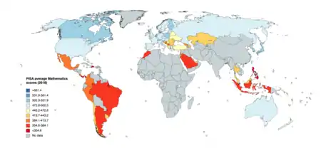 The Programme for International Student Assessment (PISA) is a worldwide study by the Organisation for Economic Co-operation and Development (OECD) in member and non-member nations intended to evaluate educational systems by measuring 15-year-old school pupils' scholastic performance on mathematics, science, and reading.[1] It was first performed in 2000 and then repeated every three years. Its aim is to provide comparable data with a view to enabling countries to improve their education policies and outcomes. It measures problem solving and cognition.[2]