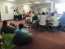 projectY cowork Los Alamos is a collaborative workspace located at 150 Central Park Square in Los Alamos, New Mexico. It serves as a hub for startups, freelancers and others to be connected to like-minded entrepreneurs, business experts, investors and mentors, and operates on a membership and day-pass model.[1]