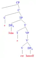 Reflexive pronouns are used when a person or thing acts on itself, for example, John cut himself. In English they all end in -self or -selves and must refer to a noun phrase elsewhere in the same clause.[2]: 55