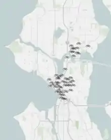 Pronto Cycle Share, branded as Pronto!, was a public bicycle sharing system in Seattle, Washington, that operated from 2014 to 2017. The system, owned initially by a non-profit and later by the Seattle Department of Transportation, included 54 stations in the city's central neighborhoods and 500 bicycles. Motivate (formerly Alta Bike Share) operated the system and Alaska Airlines was the program's presenting sponsor.[2] On March 31, 2017, Pronto shut down operations and disassembly of stations began, with the bicycles being offered to other cities that wish to start a similar system.