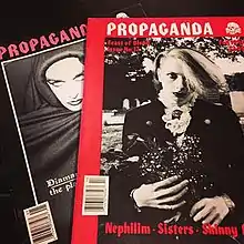 Photographer and journalist Fred H. Berger was inspired to create Propaganda based on his interest in the gothic, industrial, darkwave, occult and fetish subcultures. Berger's official title was not editor-in-chief, but "Propaganda Minister".[2] Between 1991 and 1995 Propaganda produced three videos, The Trilogy, Blood Countess, and The Ritual. Blood Countess is about Elizabeth Bathory.[3] The magazine featured interviews and coverage of music acts such as Bauhaus, Xmal Deutschland, Laibach, Skinny Puppy, Fields of the Nephilim, The Sisters of Mercy, Diamanda Galas, Jesus & Mary Chain, Siouxsie And The Banshees, Coil, Christian Death, Alien Sex Fiend, Swans, Legendary Pink Dots, My Life With the Thrill Kill Kult, Shadow Project, Xymox, Death in June, Dead Can Dance, Front Line Assembly, The Cure, Danzig and Love & Rockets.[2][4][5] Other subjects included articles about the Salem Witch Trials, the Holy Lance, Nazi-fetish chic, the Masque of the Red Death, Oscar Wilde, the Haunted Summer with Lord Byron and Mary Shelley, and queer chic authors Jean Genet and Yukio Mishima. Interviews with favorite goth authors Anne Rice and Poppy Z. Brite were also featured, as well as travel pieces such as "Old Haunts In New Orleans."[2][4]