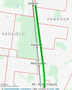 In the lead up to the 2014 State election, the Greens proposed extending route 19 from its current terminus at Bakers Road, North Coburg for a length of 3.7 km passing Merlynston Station, Fawkner Station and ending with a new terminus outside Gowrie Station.[22] In 2018, the Rail Futures Institute called for a similar extension to Merlynston Station.[17]